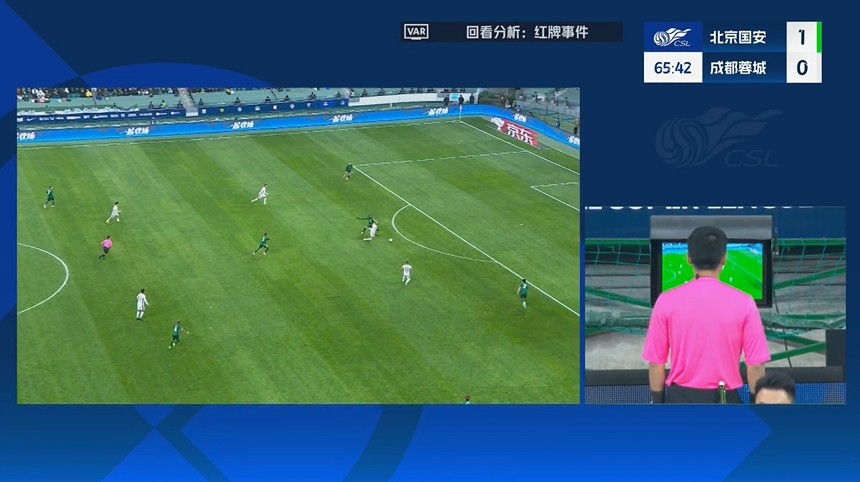 北京國安本輪的對手是成都蓉城,比賽下半時(shí)國安后防核心恩加德烏后場(chǎng)拿球失誤,隨即又放倒了前來(lái)?yè)寯嗟馁M利佩,當值主裁馬寧在經(jīng)過(guò)VAR視頻回看后將恩加德烏罰下。