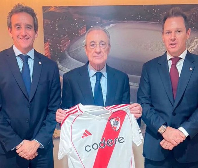 河床主席布里托造訪(fǎng)伯納烏觀(guān)看比賽,與弗洛倫蒂諾合影