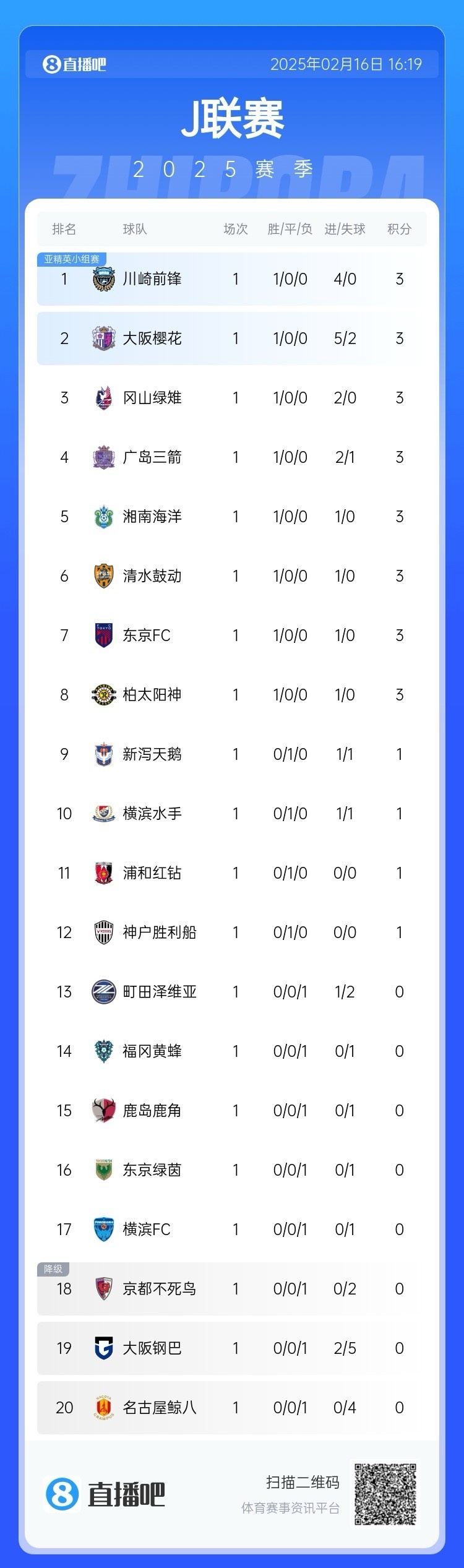 2月16日訊 新賽季J1聯(lián)賽于本周末拉開(kāi)帷幕,本賽季是J1聯(lián)賽改為跨年賽制前最后一個(gè)賽季。首輪揭幕戰便上演“大阪德比”,最終香川真司效力的大阪櫻花5-2大勝上賽季殿軍大阪鋼巴,香川真司也收獲賽季首球。其他比賽,衛冕冠軍神戶(hù)勝利船主場(chǎng)0-0悶平浦和紅鉆,川崎前鋒4-0大勝名古屋鯨八,橫濱水手1-1戰平新瀉天鵝,町田澤維亞主場(chǎng)1-2不敵廣島三箭。