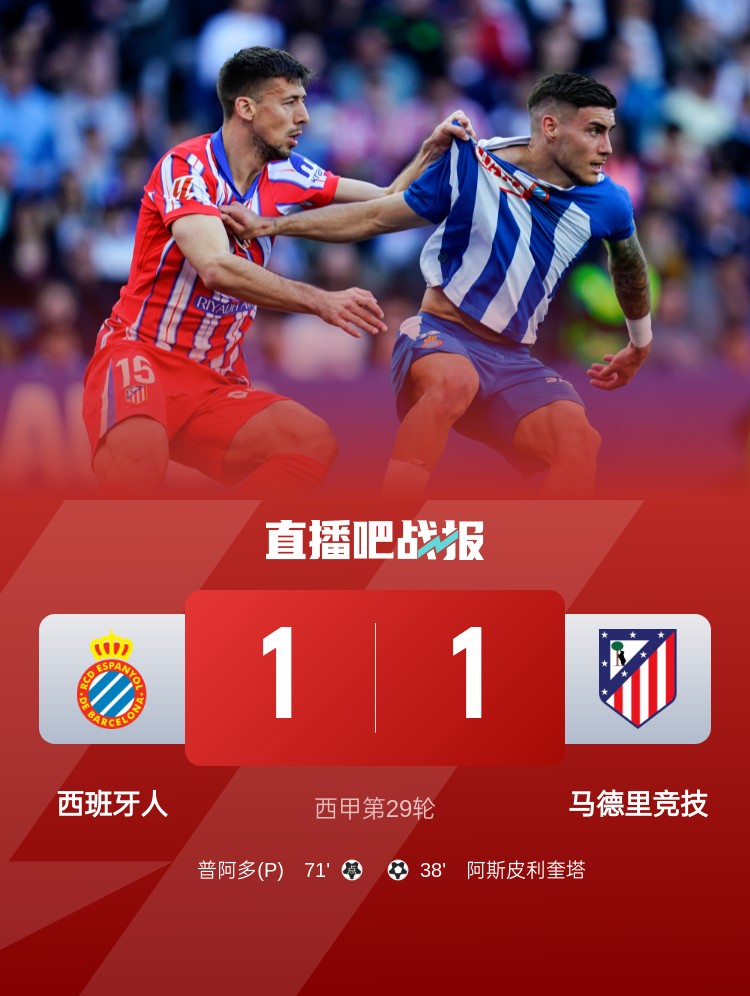 西甲第29輪,馬競客場(chǎng)1-1西班牙人。上半場(chǎng),勒諾爾芒傷退,阿斯皮利奎塔凌空無(wú)解世界波;下半場(chǎng),朗格萊魯莽拉人送點(diǎn),普阿多點(diǎn)射扳平。