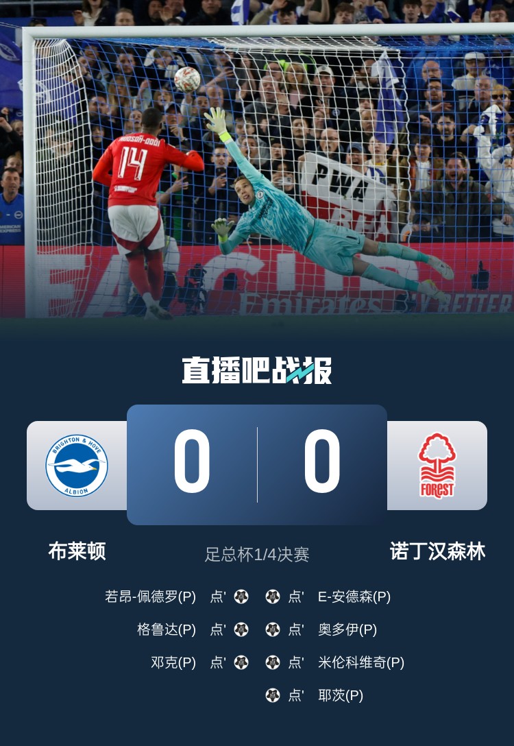 足總杯-布萊頓點(diǎn)球大戰3-4諾丁漢森林遭淘汰 塞爾斯兩撲點(diǎn)