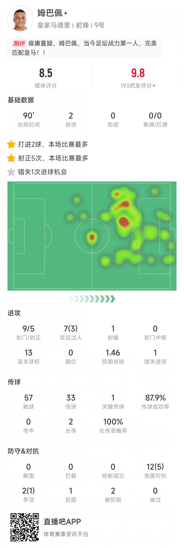 姆巴佩當選全場(chǎng)最佳球員:9次射門(mén)打進(jìn)2球,7次過(guò)人3次成功