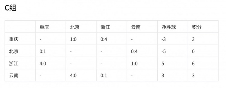 浙江已確定一個(gè)出線(xiàn)資格,重慶vs云南,誰(shuí)勝將獲得小組第二,若打平雙方各積 4分,云南獲得小組第二,重慶積4分獲得小組第三凈勝球為-3個(gè),以成績(jì)最好的小組第三出線(xiàn)概率較低。