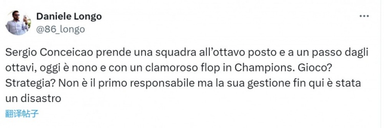 隆戈:米蘭聯(lián)賽排名下降+歐冠出局,孔塞桑至今的執教堪稱(chēng)災難