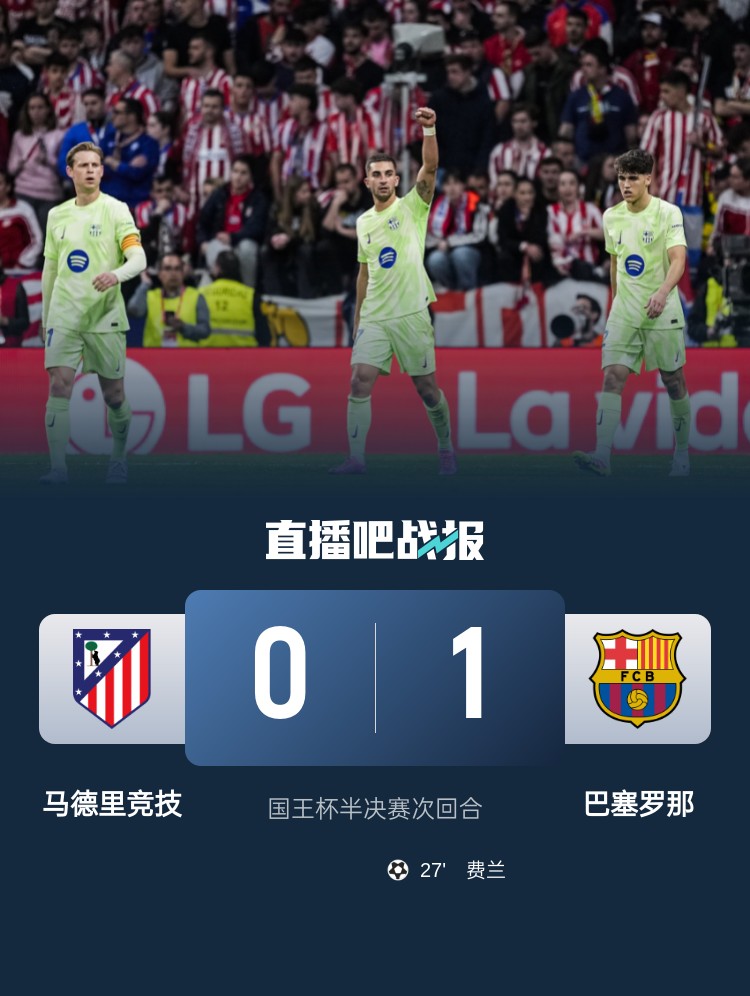 費蘭制勝,巴薩客場(chǎng)1-0戰勝馬競,總比分5-4淘汰馬競進(jìn)軍國王杯決賽,將對陣皇馬。