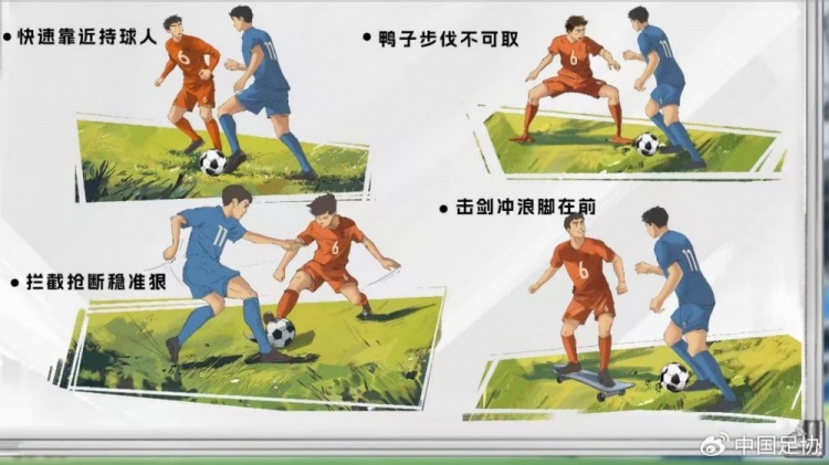 為了讓隊員們更直觀(guān)理解每堂課的內容,宗磊特意將每項培訓內容的要點(diǎn)提煉出“七字箴言”,比如針對一對一防守,他提煉的要訣為,“快速靠近持球人,攔截搶斷穩準狠;鴨子步伐不可取,擊劍沖浪腳在前”。不僅如此,他還請人配上了漫畫(huà),讓人看了,一目了然。