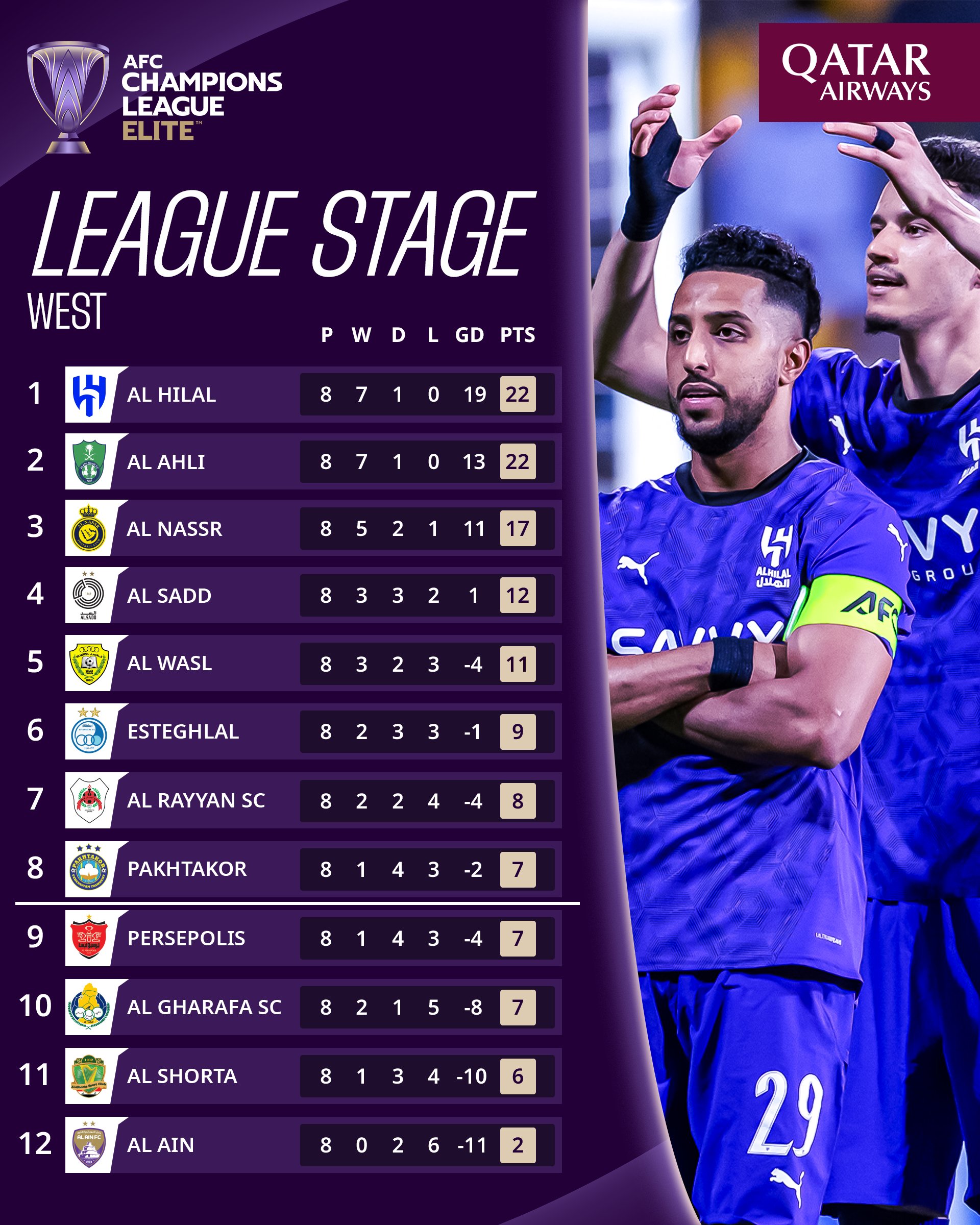 02月21日訊 亞冠官方公布了亞冠精英聯(lián)賽東西亞區積分榜。