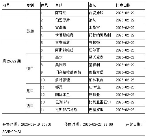 傳足勝負彩第25027期競猜賽事中不乏豪門(mén)出戰:英超方面,阿森納主場(chǎng)對陣西漢姆,切爾西客場(chǎng)挑戰維拉;意甲,國際米蘭主場(chǎng)迎來(lái)熱那亞;西甲賽場(chǎng)上,巴薩客場(chǎng)面對拉斯帕爾馬斯。