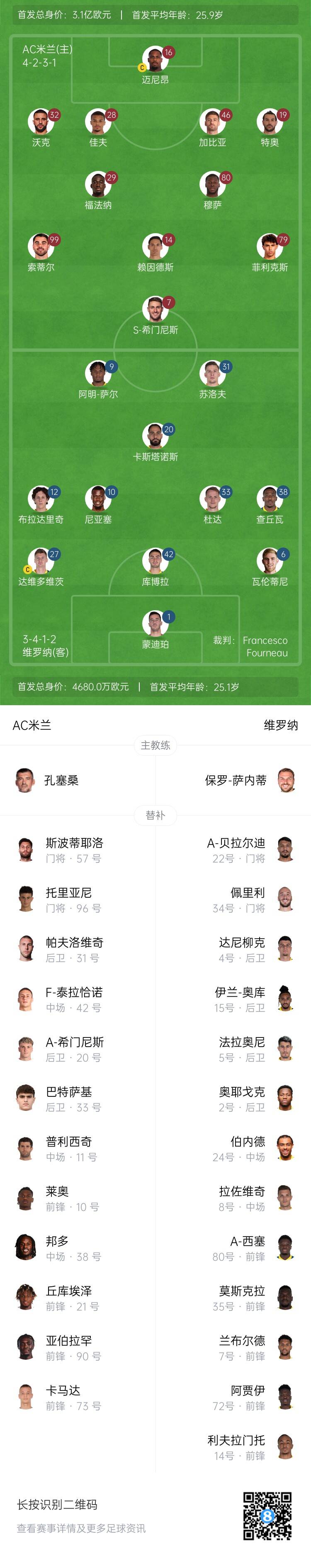 2月16日訊 意甲第25輪,AC米蘭主場(chǎng)對陣維羅納。賽前,官方公布了本場(chǎng)的首發(fā)名單。