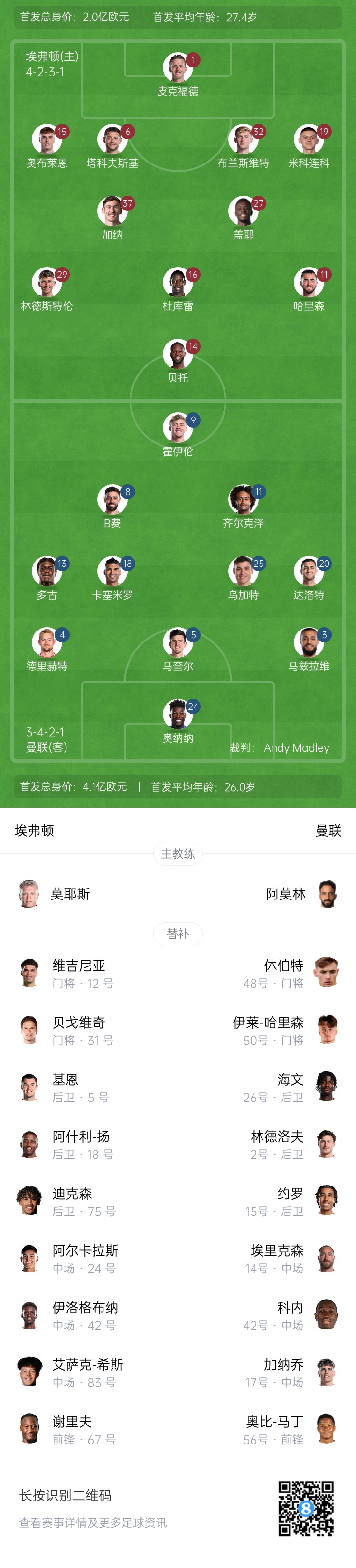 埃弗頓替補:12-維吉尼亞、31-貝戈維奇、5-邁克爾-基恩、18-阿什利-揚、24-阿爾卡拉斯、42-伊羅布南、67-謝里夫、75-迪克斯、83-希頓