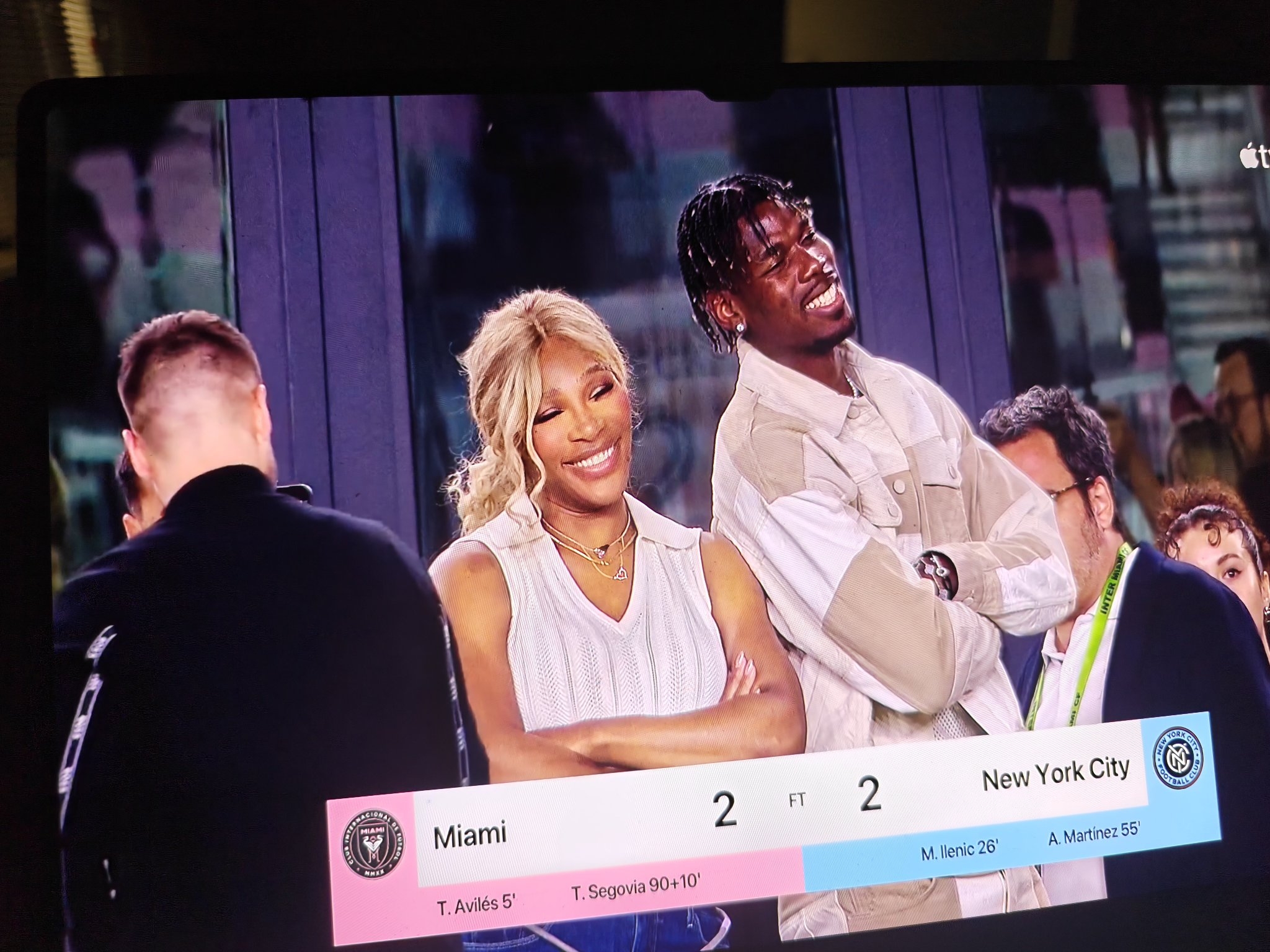 本場(chǎng)比賽,博格巴與網(wǎng)壇名將小威廉姆斯現場(chǎng)觀(guān)戰,見(jiàn)證梅西率隊絕平。