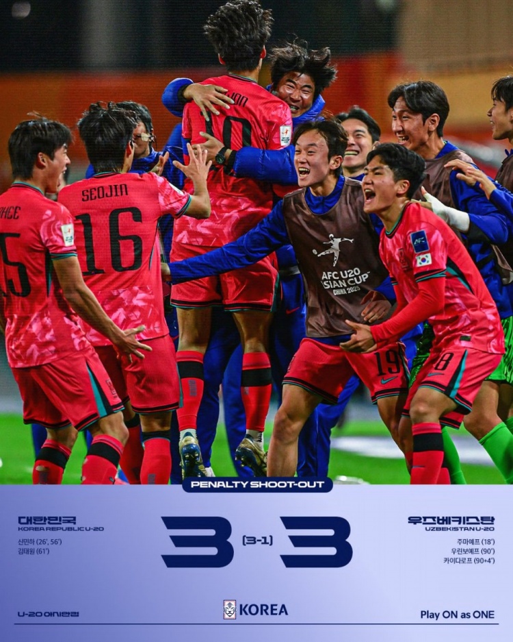 2月24日訊 U20亞洲杯1/4決賽,韓國U20和烏茲別克斯坦U20在常規時(shí)間戰成3-3,最終通過(guò)點(diǎn)球大戰韓國U20總比分6-4淘汰烏茲別克斯坦U20,獲得世青賽資格。