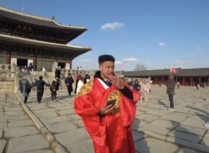 獲勝后的第二天,林加德在個(gè)人社媒進(jìn)行了直播,身穿王袍現身景福宮,他還擺出了國王的姿勢,引得圍觀(guān)群眾哈哈大笑。