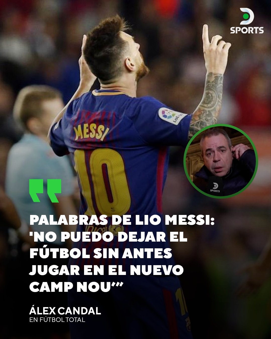 Alex candal透露,梅西將在不久的將來(lái)回到巴塞羅那。他還表示:“梅西的話(huà)是‘在新諾坎普球場(chǎng)踢球之前,我不能離開(kāi)足球?!?/p>
