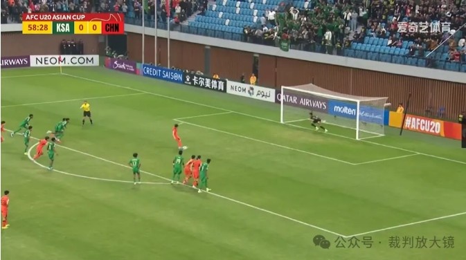 在中國隊主罰隊員將球踢出前,明顯可以看出有兩名沙特隊員提前進(jìn)入罰球區,并且就是在裁判員的目視下,那么在球罰丟的情況下,需不需要重罰呢?