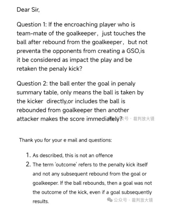 針對上述情況,也有老師咨詢(xún)了IFAB,給出的答案,大家可以參考。