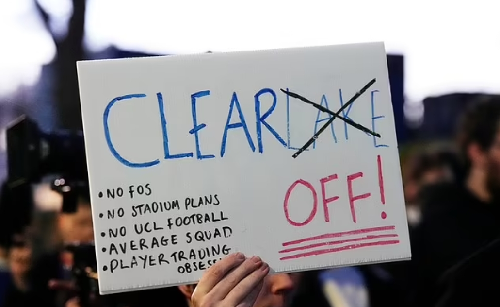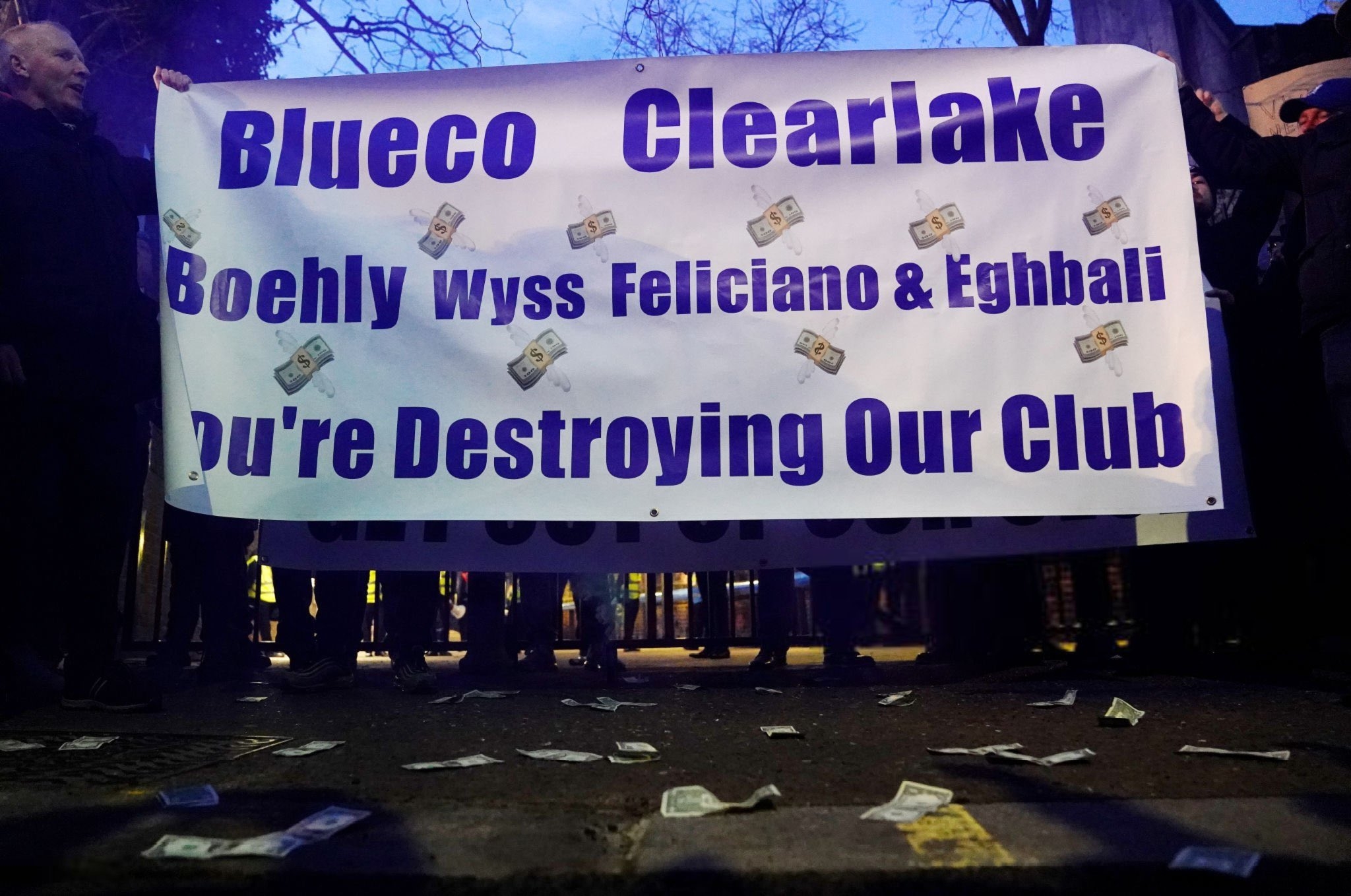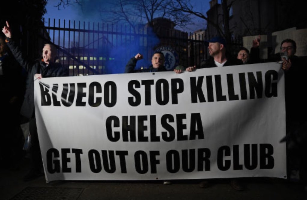 在比賽開(kāi)始前,數百名切爾西球迷在斯坦福橋場(chǎng)外舉行了抗議活動(dòng),對切爾西老板伯利和清湖資本。