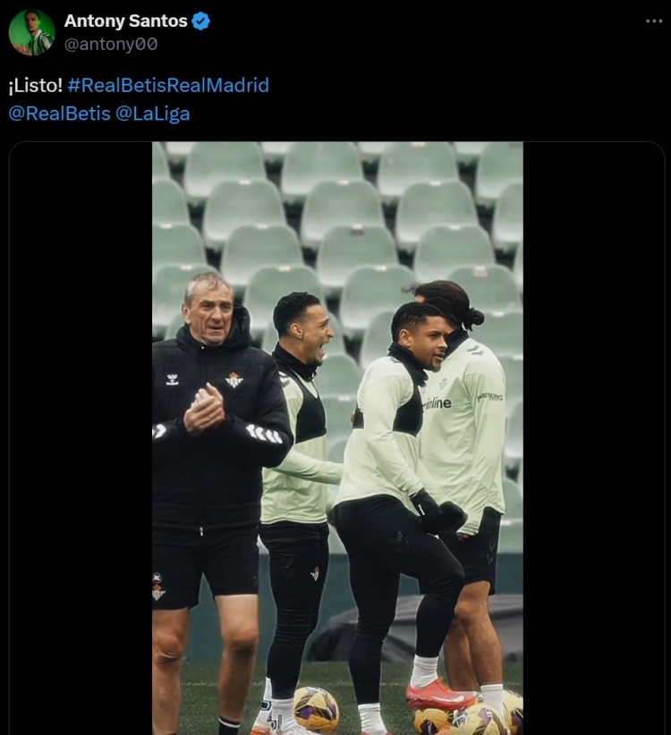 安東尼也通過(guò)社媒曬出自己隨隊備戰的視頻,并配文:“我準備好了!皇家貝蒂斯vs皇家馬德里!”