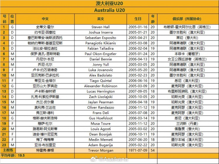 2月17日訊 明晚19:30,U20亞洲杯A組第三輪國青將迎戰澳大利亞U20。今日德轉中國區管理員朱藝更新社媒,曬出了本場(chǎng)國青的23人大名單。