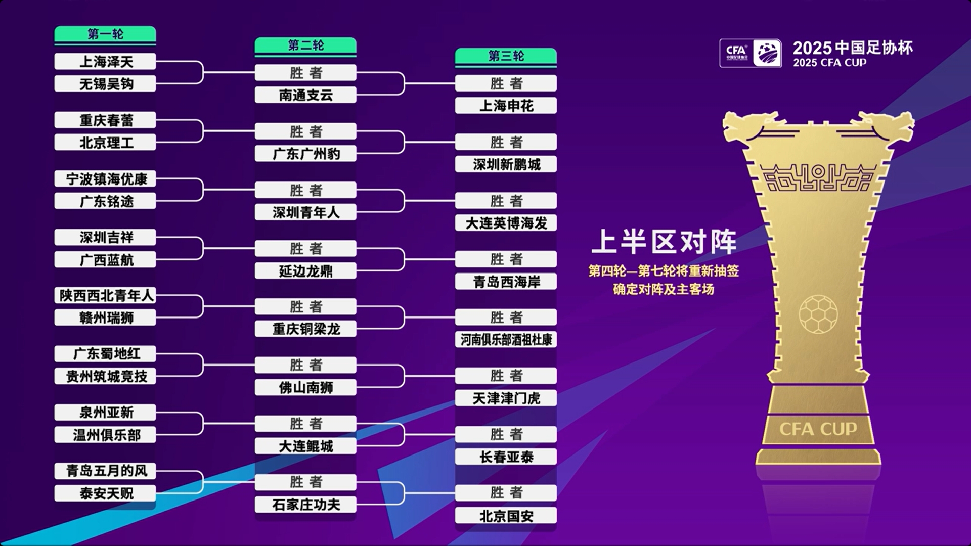 02月27日訊 2025年中國足協(xié)杯抽簽儀式今日舉行,此次抽簽確定第1輪至第3輪的對陣,中超16隊第3輪亮相并客場(chǎng)作戰,第4輪至第7輪將重新抽簽確定對陣及主客場(chǎng)。