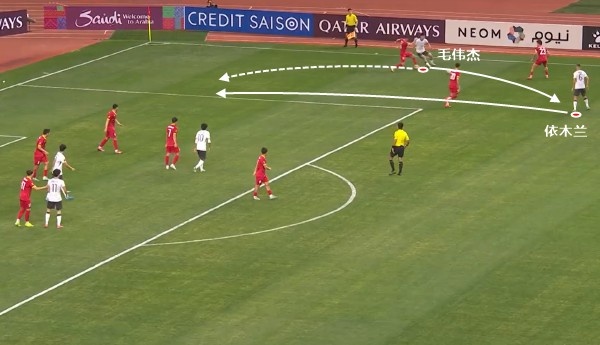 就像是這一次,隊友回傳后依木蘭面前是4名吉爾吉斯斯坦球員,通過(guò)快速的轉向,依木蘭總能調整出合適的出球角度。