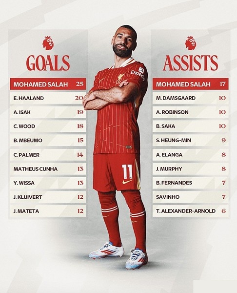 薩拉赫領(lǐng)跑英超射手榜和助攻榜,斯洛特不僅將帶來(lái)聯(lián)賽冠軍,還有可能為利物浦帶來(lái)一位金球獎得主。