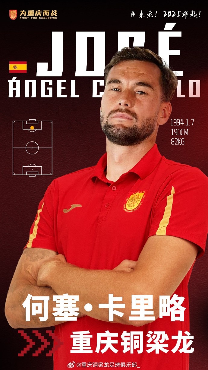 2月28日訊 官方消息,31歲西班牙前鋒何塞-卡里略正式加盟重慶銅梁龍足球俱樂(lè )部。