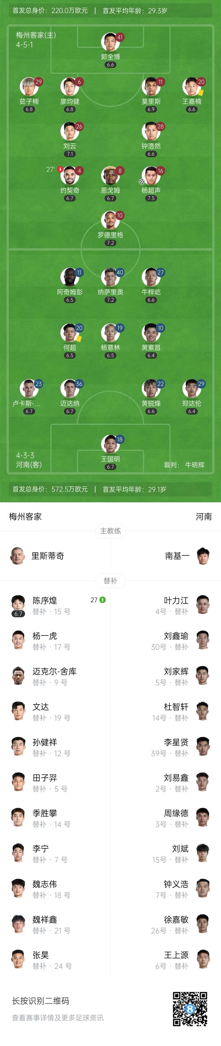 3月1日訊 北京時(shí)間3月1日19:35,中超第2輪,梅州客家坐鎮主場(chǎng)梅州五華奧體中心迎戰河南。上半場(chǎng),約契奇禁區內掃射被撲出,隨后受傷離場(chǎng),楊超聲小角度抽射破門(mén),阿奇姆彭制造點(diǎn)球,納薩里奧主罰被郭全博撲出。上半場(chǎng)比賽結束,梅州客家暫時(shí)1-0領(lǐng)先河南。