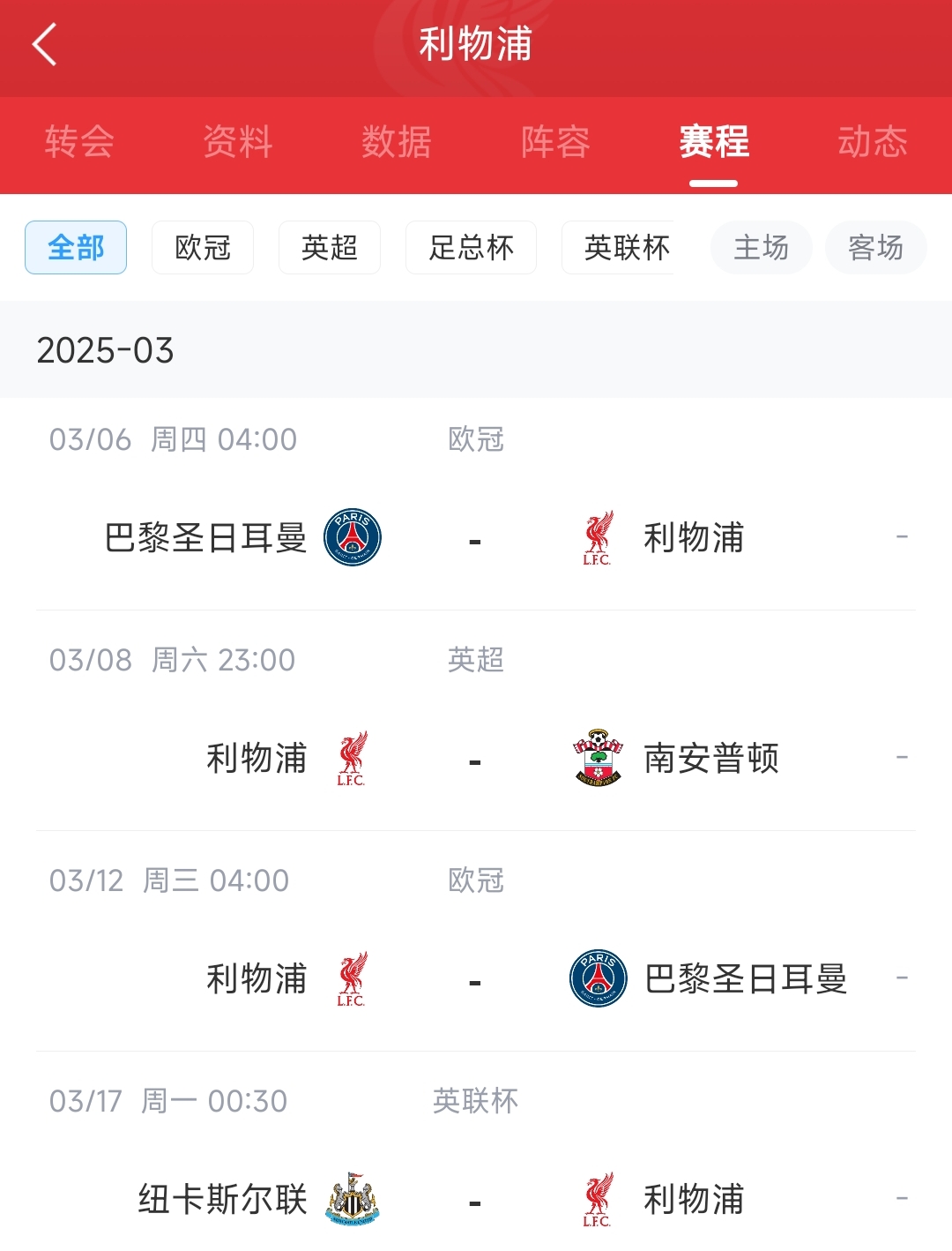 2025年埃及的齋月為3月1日-3月30日。在齋月期間,每天黎明至日落不能進(jìn)食,要到太陽(yáng)落山后后方可進(jìn)餐。3月份利物浦共要進(jìn)行四場(chǎng)比賽,包括一場(chǎng)英超、兩場(chǎng)歐冠、一場(chǎng)聯(lián)賽杯決賽。